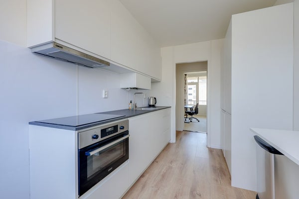 Upon entering, the well-maintained and fresh finish immediately stands out. In 2022, the kitchen, bathroom, toilet and laminate flooring were all renovated, giving the apartment a contemporary look and allowing for immediate occupancy. The walls and ceilings are neatly finished, creating a calm and modern base throughout the home.