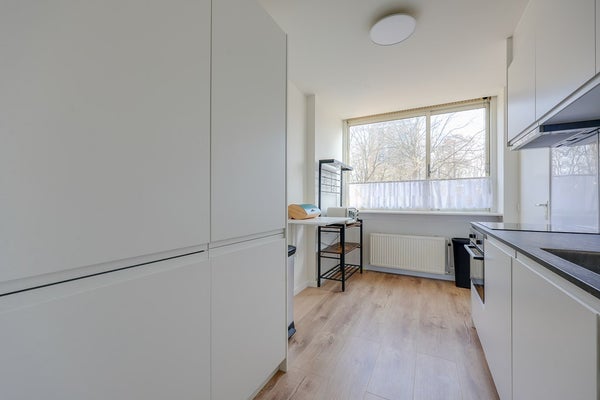 De dichte keuken is in 2022 vernieuwd en modern uitgevoerd, met diverse inbouwapparatuur zoals een koel-/vriescombinatie, oven, vaatwasser en inductiekookplaat. Daarnaast is er voldoende werk- en kastruimte aanwezig, waardoor functionaliteit en comfort goed samenkomen.