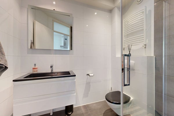 - De tussenverdieping heeft een woonoppervlakte van 55 m² en beschikt over 2 kamers, waarvan 1 slaapkamer;
