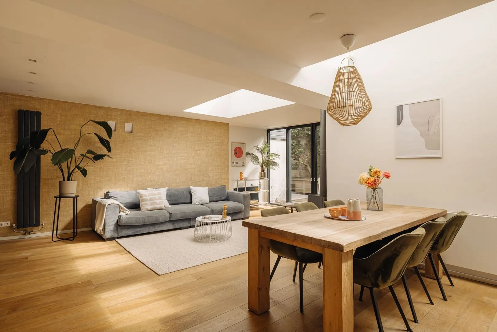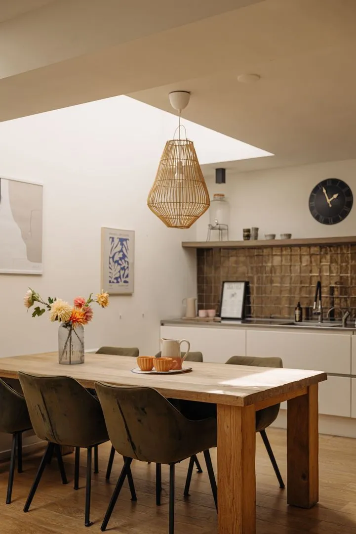 Dit royale gelijkvloerse appartement van 145 m² ligt in de Jordaan, een karakteristieke Amsterdamse buurt. Het appartement, gebouwd rond 1899, biedt vier slaapkamers en twee badkamers, ideaal voor een gezin of voor werk en privé. Bij binnenkomst is er een lichte ruimte voor een kantoor, met uitzicht over de Laurierstraat. Het centrale gangpad verbindt de vertrekken met veel daglicht. De woonkamer met open eetkeuken is de hart van het huis, met toegang tot een zonnige patio van circa 32 m². De buurt biedt talloze cafés, restaurants en markten, met een supermarkt en het stadscentrum in de buurt. De bereikbaarheid is uitstekend met tram- en buslijnen en snelwegen vlakbij.