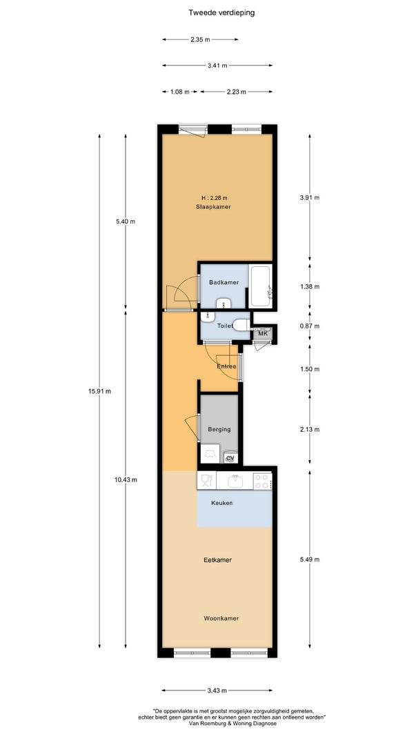 - De bovenwoning heeft een woonoppervlakte van 49 m² en beschikt over 2 kamers, waarvan 1 slaapkamer;