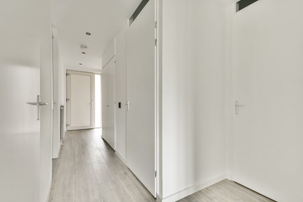 Vanuit de hal kom je de lichte woonkamer binnen voorzien van grote pui met toegang tot het ruime balkon. De nette afwerking en fijne indeling laten je hier gelijk thuis voelen. De ruimte is keurig afgewerkt met een mooie vloer, daarbij zorgen de strak gestucte wanden en het fantastische lichtinval voor een mooi ruimtelijk effect.