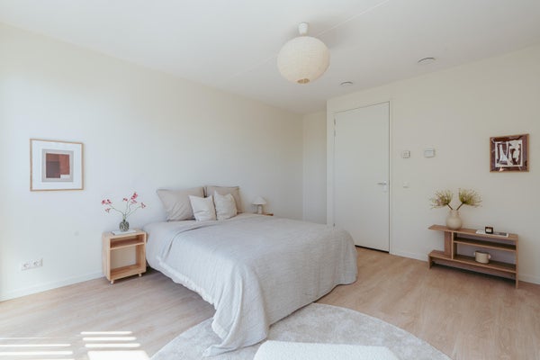- De bovenwoning heeft een woonoppervlakte van 100 m² en beschikt over 3 kamers, waarvan 2 slaapkamers;