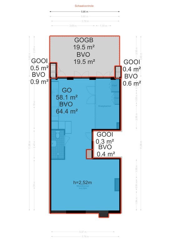 - De bovenwoning heeft een woonoppervlakte van 58 m² en beschikt over 2 kamers, waarvan 2 slaapkamers;