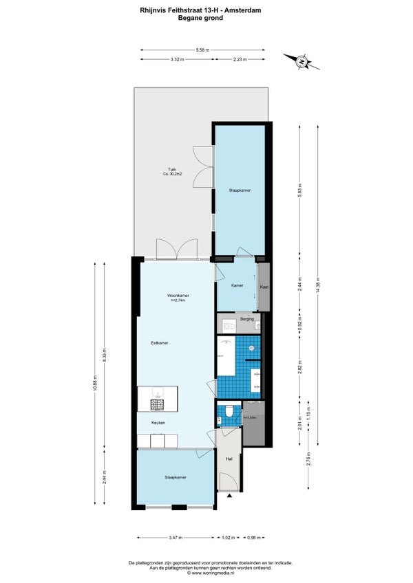 - Aanwezig (31 m², gelegen op het noordoosten)