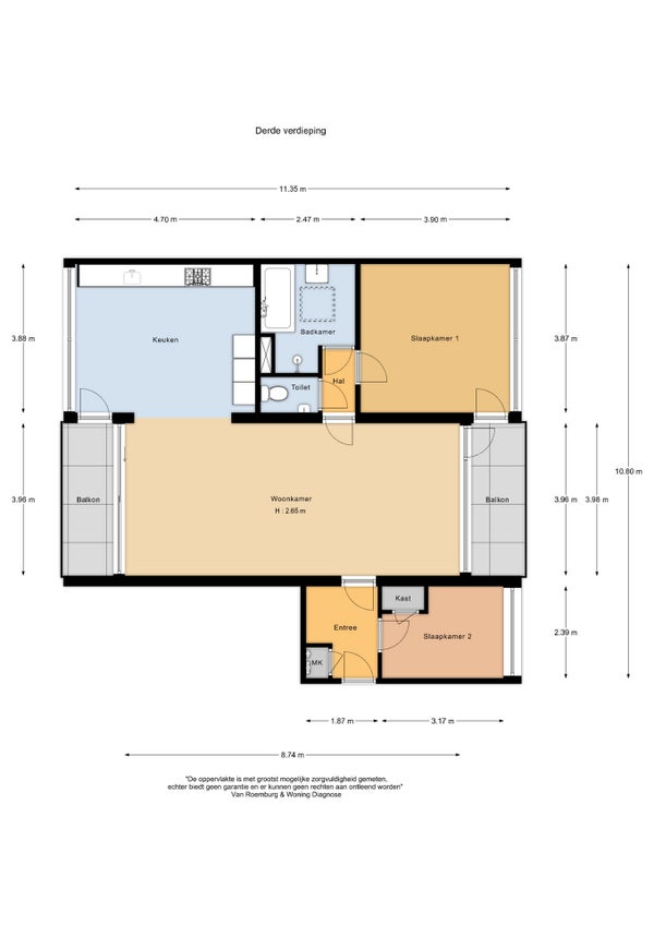 • De portiekflat heeft een woonoppervlakte van 95 m² en beschikt over 3 kamers, waarvan 2 slaapkamers;