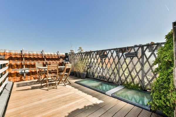 - De woning beschikt onder andere over de volgende voorzieningen: Airconditioning, Jacuzzi, Dakterras, Douche, Dakraam, Stoomcabine, Toilet, Wasruimte.