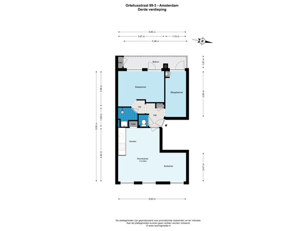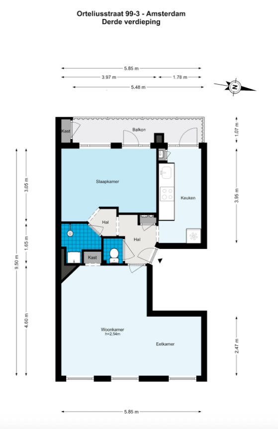 - De bovenwoning heeft een woonoppervlakte van 49 m² en beschikt over 3 kamers, waarvan 2 slaapkamers;