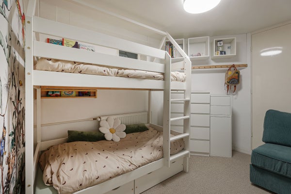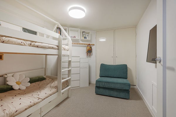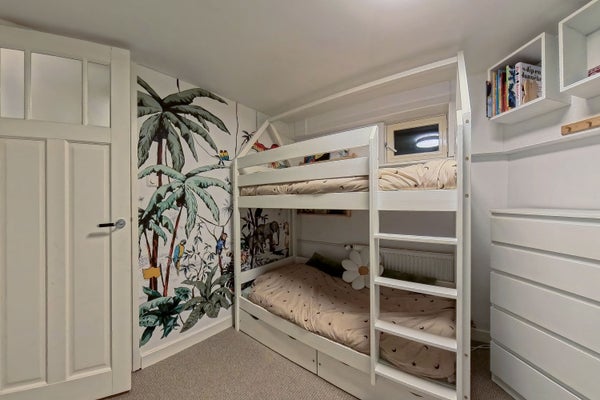 Aan de achterzijde van het souterrain liggen nog twee slaapkamers: een ruime tweede slaapkamer, ideaal als kinderkamer, en een derde kamer die perfect kan dienen als babykamer, werkkamer of logeerkamer.