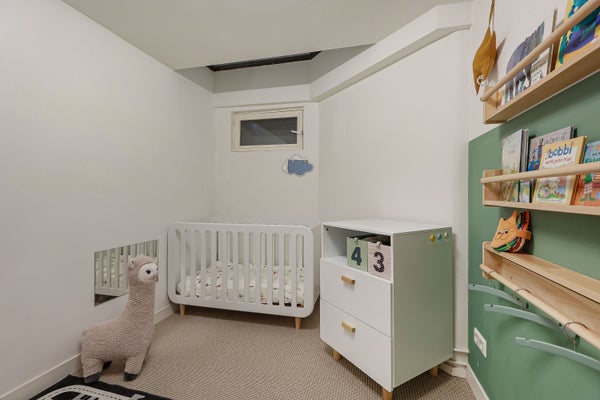 At the rear of the basement are two more bedrooms: a spacious second bedroom, ideal as a children's room, and a third room that is perfect as a nursery, study, or guest room.