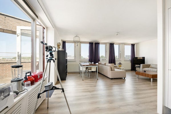 Bent u op zoek naar een licht, ruim en modern appartement met ultieme privacy en panoramisch uitzicht? Dit schitterende hoek appartement op de zesde (en tevens hoogste) verdieping biedt alles wat u zich kunt wensen. Dankzij de ligging op de hoek en de vele raampartijen geniet u van een overvloed aan natuurlijk licht en een adembenemend uitzicht over de stad en de omgeving. Bovendien heeft u geen boven- of zijburen — rust en privacy gegarandeerd.
