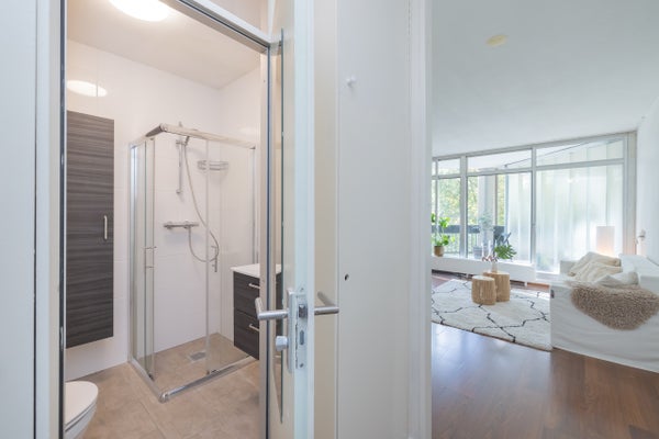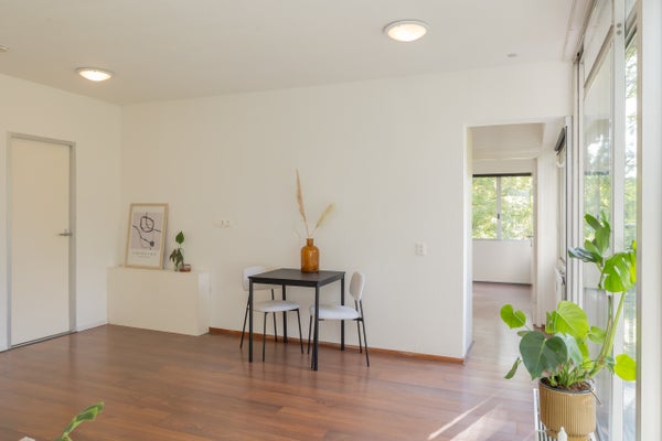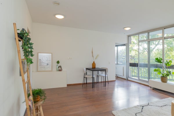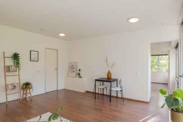 - De portiekflat heeft een woonoppervlakte van 52 m² en beschikt over 2 kamers, waarvan 1 slaapkamer;