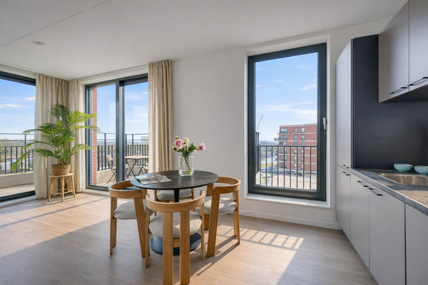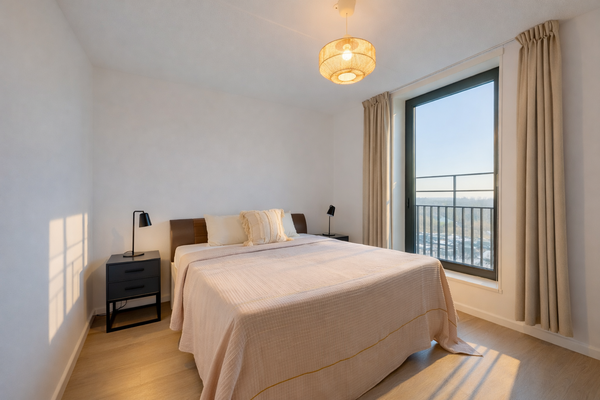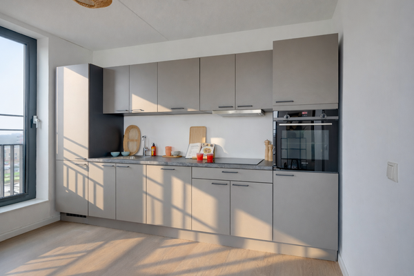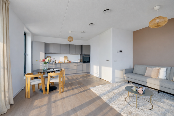 Dit instapklare 3-kamer hoekappartement van circa 72 m², gelegen op de 5e verdieping, biedt comfort en panoramisch uitzicht over Zijkanaal I. Met twee zonnige balkons, één van 7 m² op het zuiden en één van 8 m² op het oosten, kunt u volop van buitenruimte genieten. De woning is energiezuinig met label A++ en beschikt over een privé parkeerplaats in de ondergrondse garage. De indeling omvat een centrale hal, een ruime woonkamer met een moderne open keuken, twee slaapkamers en een badkamer met douche en wastafel. Het appartement is volledig geïsoleerd en heeft vloerverwarming. De rustige omgeving nabij groen en water maakt het ideaal, terwijl Amsterdam-Noord volop ontwikkelingen kent. De jaarlijkse erfpacht bedraagt €1.436,-. VVE-kosten zijn €177,38 per maand.