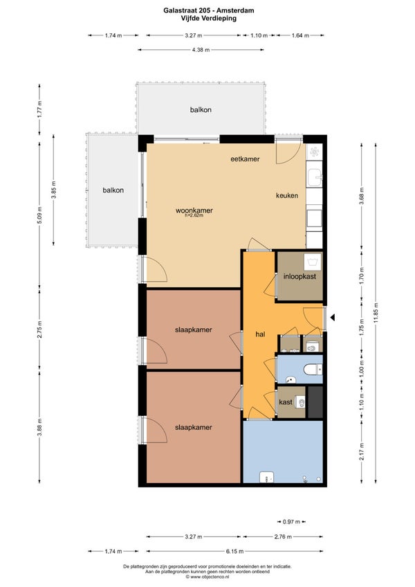 - De galerijflat heeft een woonoppervlakte van 72 m² en beschikt over 3 kamers, waarvan 2 slaapkamers;