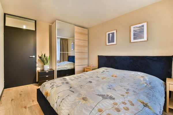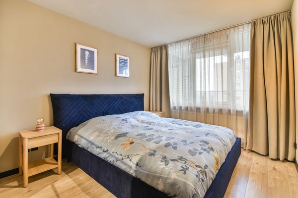 De hoofdslaapkamer biedt comfortabel plaats aan een tweepersoonsbed en een grote kledingkast. De tweede slaapkamer is flexibel in te delen en geschikt als kinder-, werk- of logeerkamer, of als walk-in closet.