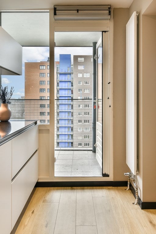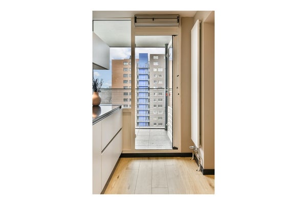 Het balkon van ca. 8,7 m² is gelegen op het zuiden en bereikbaar vanuit zowel de woonkamer als de keuken. Dankzij de afmetingen is er voldoende ruimte voor een zit- of loungehoek en kun je hier vrijwel de hele dag van de zon genieten.