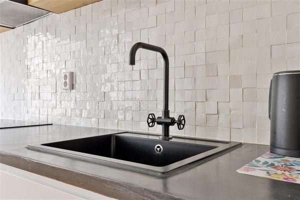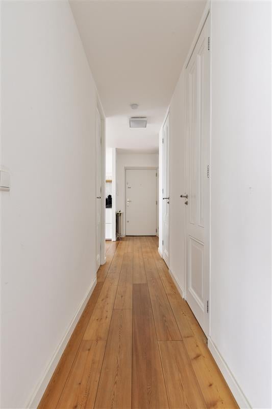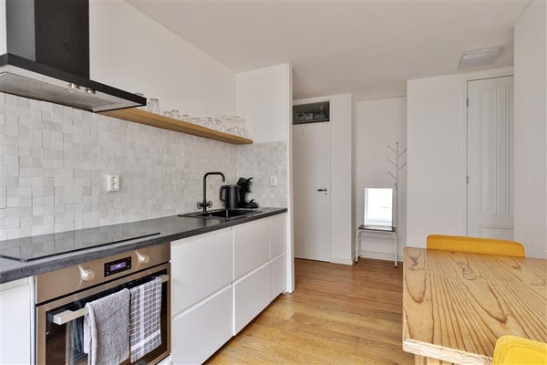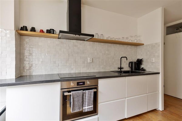 De hal verwelkomt je direct met een nette afwerking. Rechts vind je de keuken, die in 2019 volledig is vernieuwd. En dat kun je zien! Deze moderne keuken is compact en toch van alle gemakken voorzien: een tafelmodel koelkast, een combi-oven voor de lekkerste ovengerechten, een vaatwasser (voor die avonden dat je geen zin hebt in afwassen), een inductiekookplaat en een elegante afzuigkap. Deze ruimte nodigt je uit om culinaire hoogstandjes te bereiden of gewoon snel een makkelijke maaltijd in elkaar te flansen.