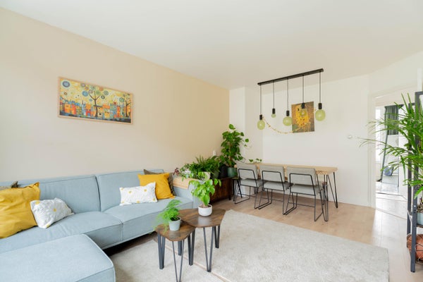 - De portiekwoning heeft een woonoppervlakte van 49 m² en beschikt over 3 kamers, waarvan 2 slaapkamers;