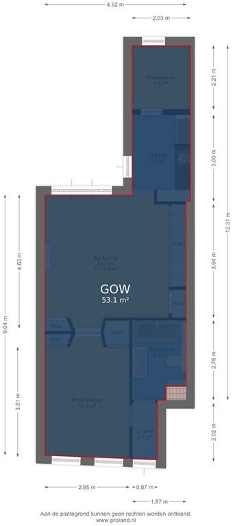 - De benedenwoning heeft een woonoppervlakte van 53 m² en beschikt over 3 kamers, waarvan 1 slaapkamer;