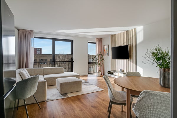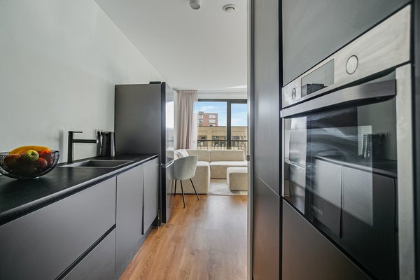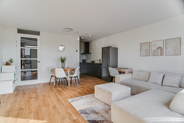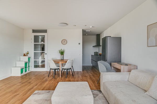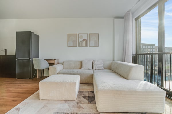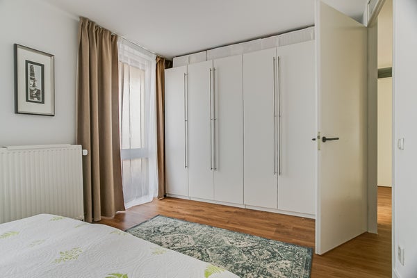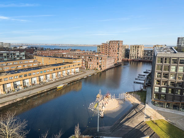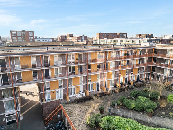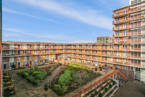 Dit licht en ruim 86 m² appartement is gelegen op de bovenste verdieping en beschikt over twee ruime slaapkamers, een moderne badkamer en keuken, en een eigen berging op de begane grond. Het Theo Frenkelhof is bereikbaar via de Erich Salomonsstraat en omringd door water. Vanuit de woonkamer heeft u uitzicht op het water en de haven, met een mooi aangelegde binnentuin aan een rustige straat. In de nabijheid vindt u parken, restaurants, Blijburg (strand), winkels en scholen, evenals tramlijn 26 naar het centrum van Amsterdam in 15 minuten. De indeling op de vierde verdieping omvat een L-vormige hal, lichte slaapkamers, een moderne badkamer en een royale woonkamer met een Frans balkon. Parkeren kan met vergunning en de maandelijkse servicekosten bedragen € 197,10. Dit appartement is ideaal voor starters en gezinnen.