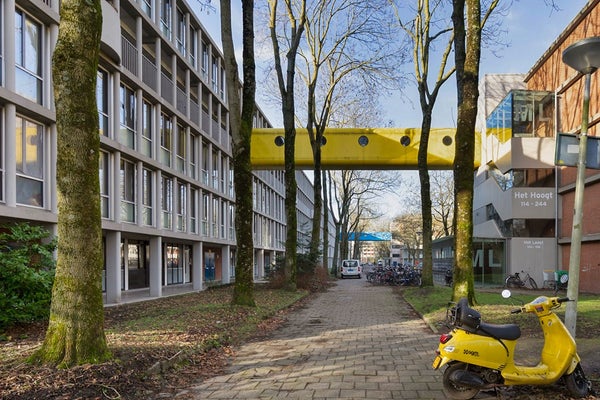 Het onder architectuur gebouwde Plan van Gool ligt midden in Amsterdam-Noord, direct naast winkelcentrum Boven ’t Y. Je woont hier rustig, groen en toch met alles om de hoek. De gebouwen, ontwikkeld eind jaren 60, liggen in een parkachtige setting. Vanuit het appartement kijk je uit op het groen en hoor je eerder vogels dan verkeer.