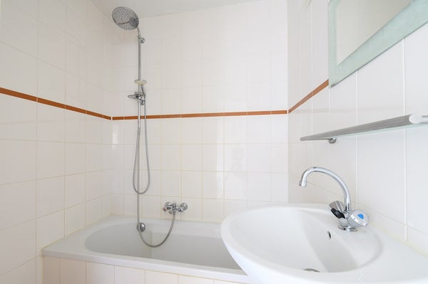 Centraal gelegen in het appartement bevinden zich de badkamer, het separate toilet en de ruimte voor de wasmachine, droger en CV installatie.
