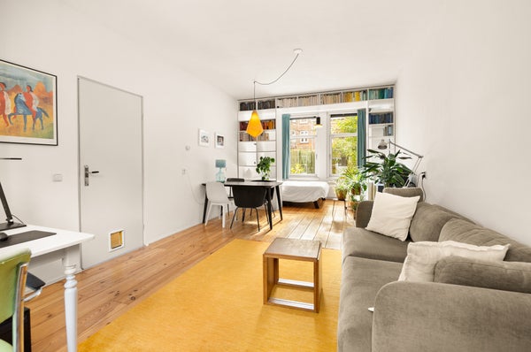 - De benedenwoning heeft een woonoppervlakte van 42 m² en beschikt over 2 kamers, waarvan 1 slaapkamer;