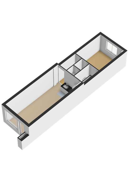 - De tussenverdieping heeft een woonoppervlakte van 50 m² en beschikt over 2 kamers, waarvan 1 slaapkamer;