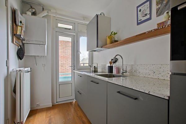 - De galerijflat heeft een woonoppervlakte van 49 m² en beschikt over 2 kamers, waarvan 1 slaapkamer;
