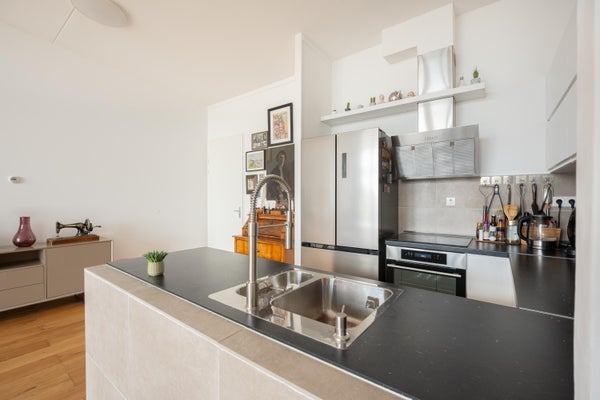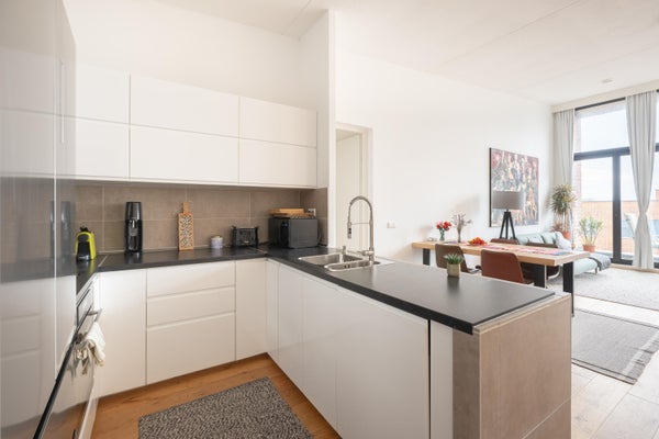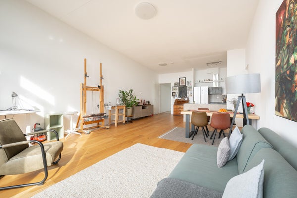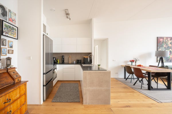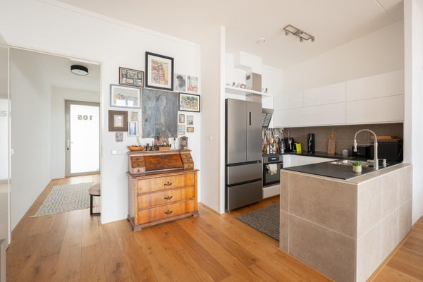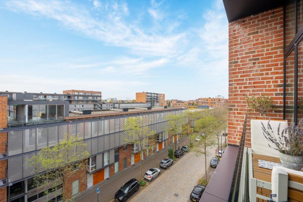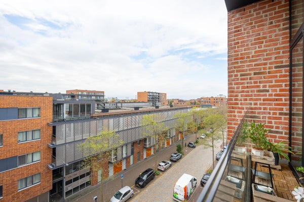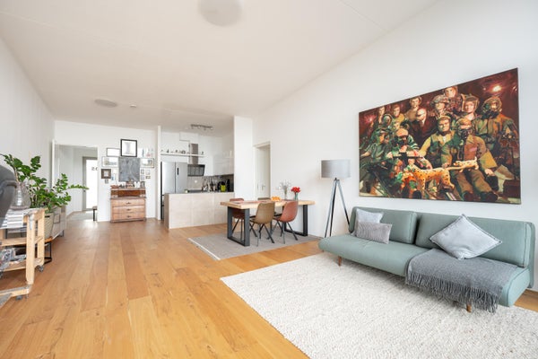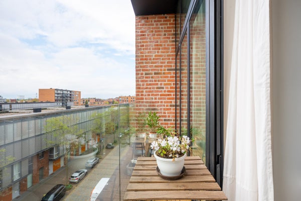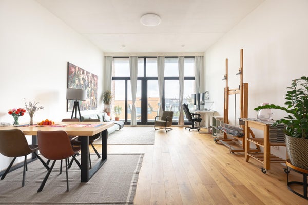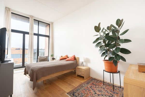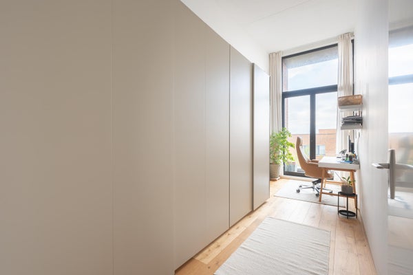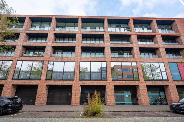 - De galerijflat heeft een woonoppervlakte van 104 m² en beschikt over 3 kamers, waarvan 2 slaapkamers;