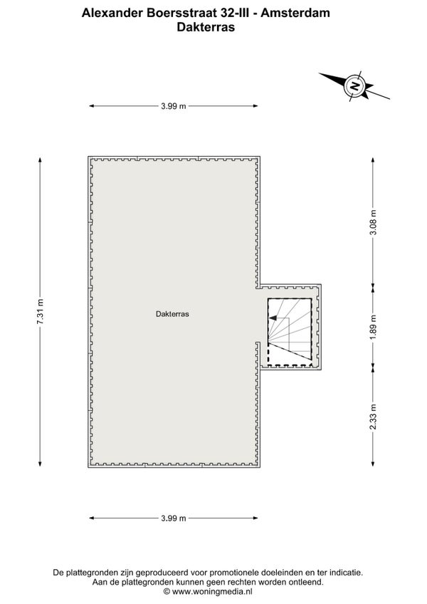 - Aanwezig (31 m², gelegen op het zuidwesten)