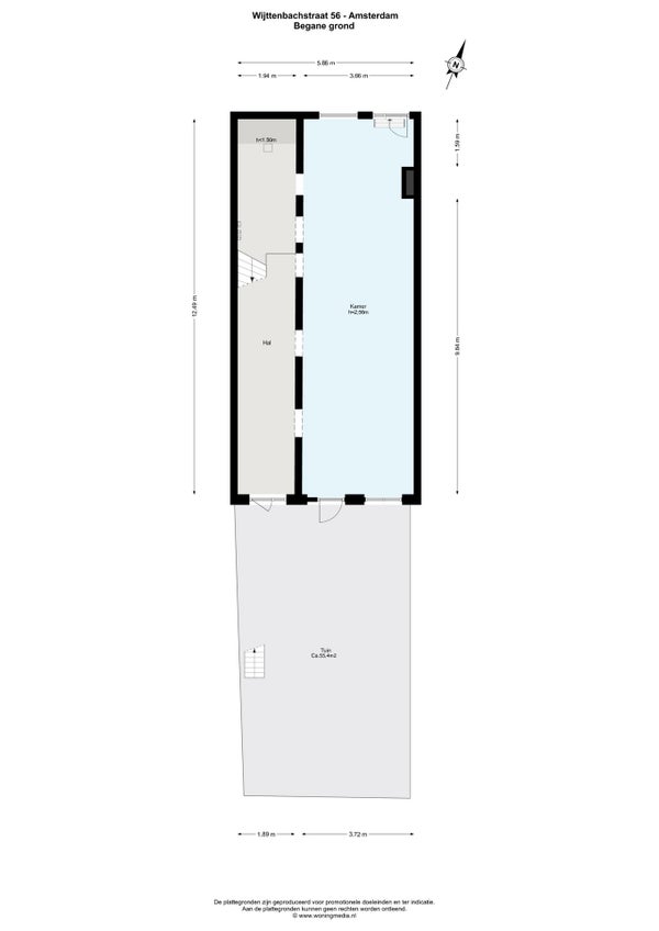 - Aanwezig (55 m², gelegen op het zuidoosten)