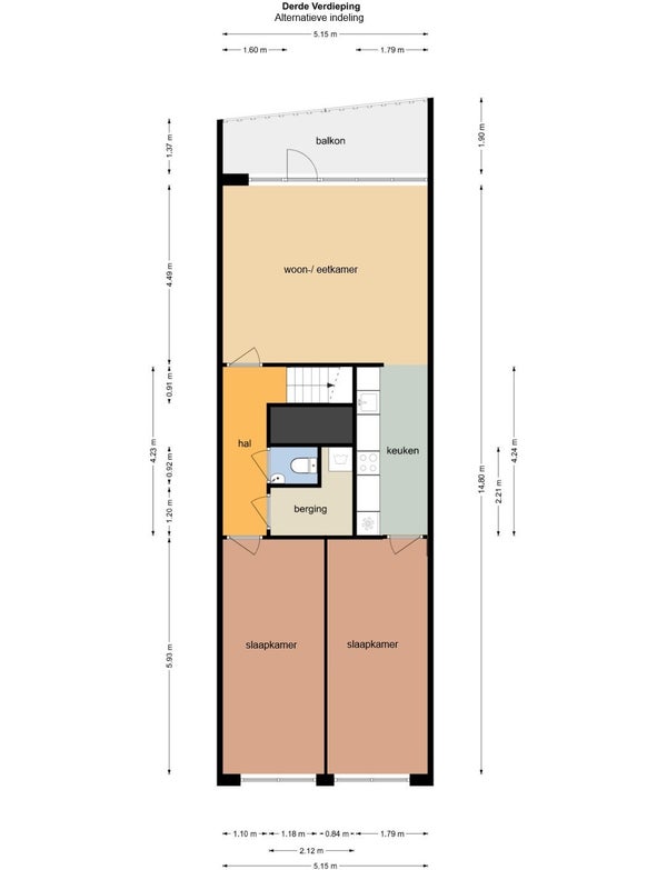 - De galerijflat heeft een woonoppervlakte van 106 m² en beschikt over 4 kamers, waarvan 3 slaapkamers;