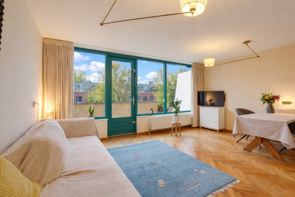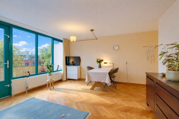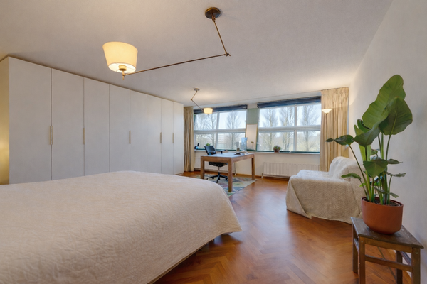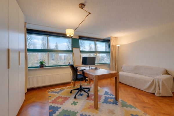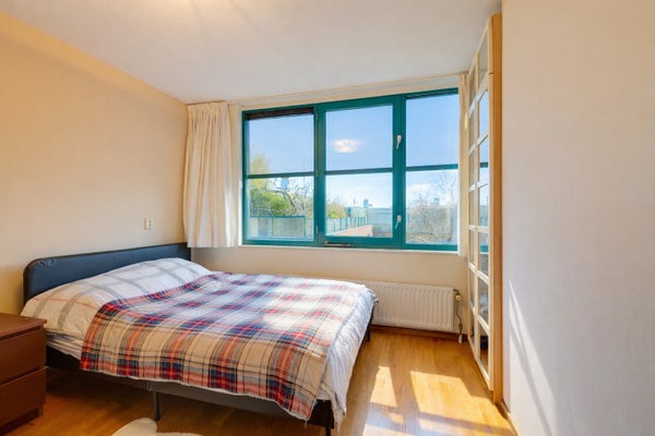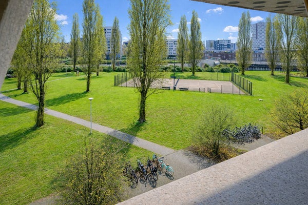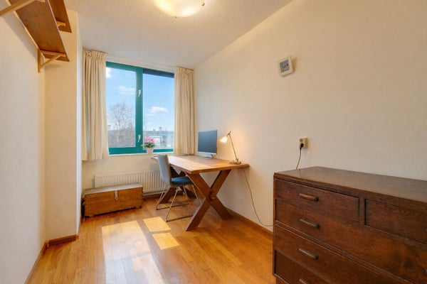 Deze uitstekend onderhouden en lichte 4/5-kamer maisonette van ca. 106 m² is gelegen op de derde en vierde verdieping en beschikt over een zonnig balkon (ca. 8 m²) op het zuiden, evenals een eigen parkeerplaats in de onderliggende garage. De indeling op de 4e verdieping omvat een entree met marmeren vloer, een toilet, twee slaapkamers en een badkamer met douche, wastafel en ligbad. Een vaste trap leidt naar de 3e verdieping, waar twee ruime kamers veel lichtinval bieden. De achterste kamer wordt gebruikt als woonkamer met toegang tot het balkon, terwijl de voorste kamer een mooi uitzicht heeft op het Rietlandpark en eenvoudig kan worden omgevormd tot twee slaapkamers. De halfopen keuken is volledig uitgerust en er zijn extra voorzieningen zoals een tweede toilet en een berging. Gelegen in het Oostelijk Havengebied, dicht bij het centrum met alle nodige faciliteiten op loopafstand.