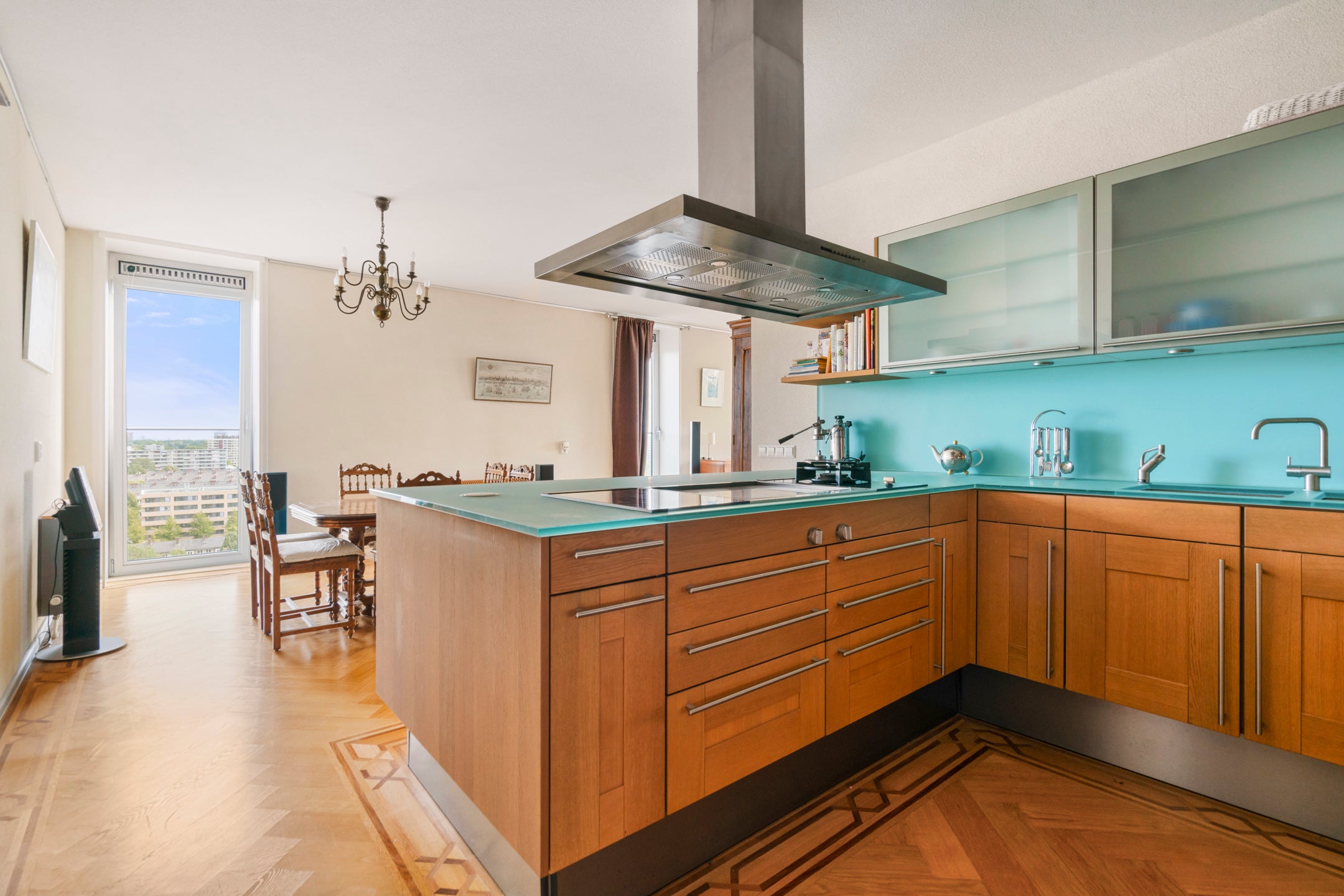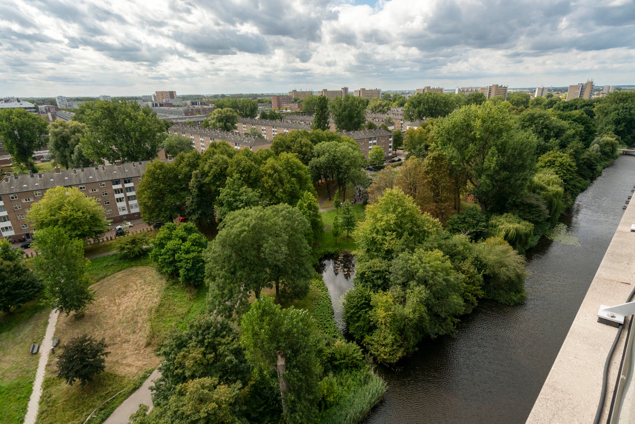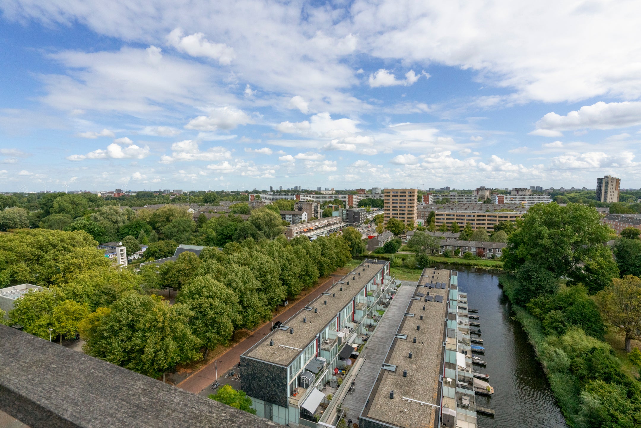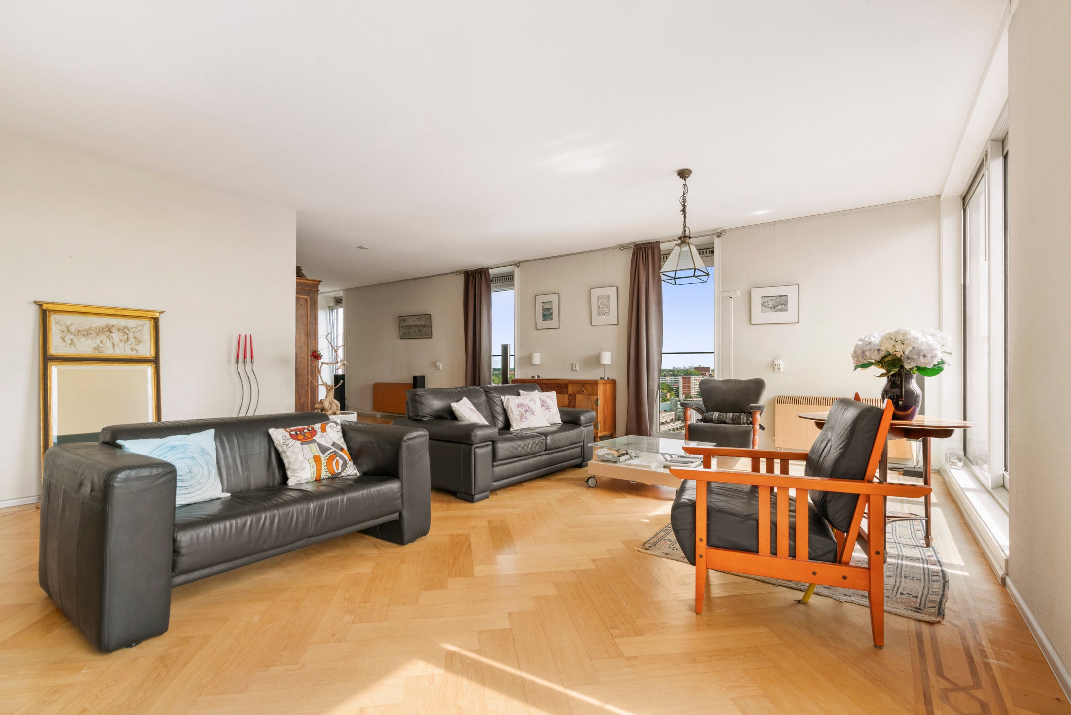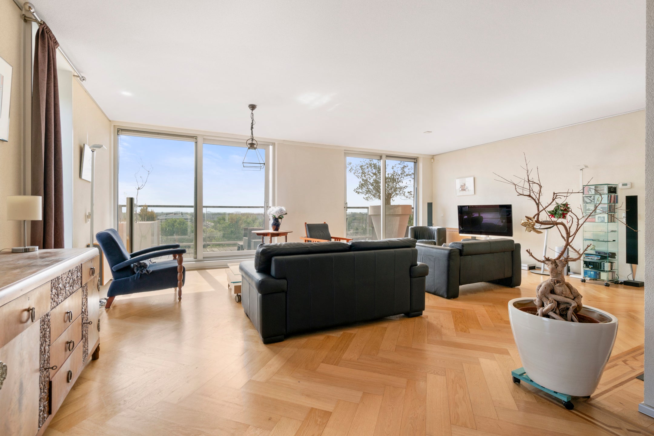 Deze ruime 3-kamer-penthouse van ongeveer 133 m² bevindt zich op de 12e verdieping en heeft een zonnig dakterras van 38 m² op het zuiden. De riante woonkamer is verdeeld in een zitgedeelte met twee schuifpuien naar het dakterras en een eetgedeelte dat aansluit op de open keuken, die goed verlicht wordt door extra zijramen met Franse balkons. De woning is luxe afgewerkt, inclusief een fraaie eiken visgraat parketvloer. Daarnaast beschikt het over een eigen parkeerplaats en fietsenberging in de onderbouw. De locatie biedt panoramisch uitzicht en een combinatie van stedelijk gemak en rust, met winkels en recreatiemogelijkheden in de nabijheid. Tram- en busverbindingen zijn praktisch voor de deur, waardoor de bereikbaarheid uitstekend is. De servicekosten van de VvE bedragen € 208,70 per maand.