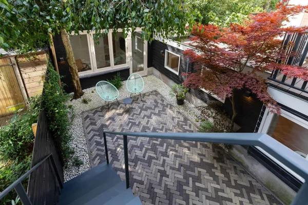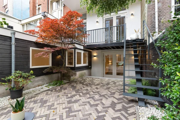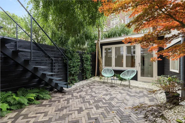 Dit stijlvol dubbel benedenhuis van 162 m² is gevestigd in een klassiek herenhuis uit 1877, met hoge plafonds en eigentijdse afwerkingen. Het appartement is energiezuinig (energielabel B), op eigen grond en heeft een L-vormige doorzonwoonkamer met terras (12 m²) en een fraai aangelegde achtertuin (34 m²) op het zuiden. Binnen zijn er vier slaapkamers en drie badkamers, naast royale bergruimte, en het interieur bevat verschillende klassieke en moderne elementen. De locatie in het centrum van Amsterdam biedt nabijheid tot de grachtengordel en de Pijp, met supermarkten en speciale winkels in de buurt. Ook zijn culturele voorzieningen en parken gemakkelijk te bereiken. Met uitstekende bereikbaarheid via trams en de Noord/Zuidlijn is dit appartement ideaal voor wie het stadsleven zoekt.