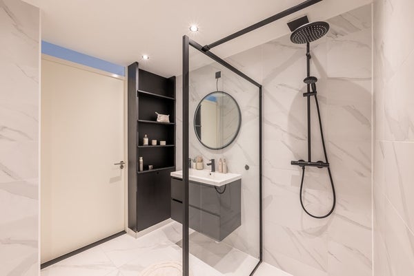 Bij binnenkomst tref je een ruime hal met toegang tot alle vertrekken. De royale woonkamer, over de gehele breedte van het appartement, biedt volop ruimte en is smaakvol afgewerkt met een moderne open keuken voorzien van diverse inbouwapparatuur. Aan de voorzijde bevinden zich twee ruime slaapkamers, ideaal als hoofdslaapkamer en een extra kamer voor gasten, werk of hobby. De vernieuwde badkamer springt eruit door de luxe en moderne afwerking, voorzien van een ruime inloopdouche en stijlvol wastafelmeubel. Daarnaast is er een separaat toilet en een praktische berging met aansluiting voor een wasmachine.