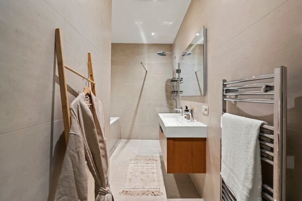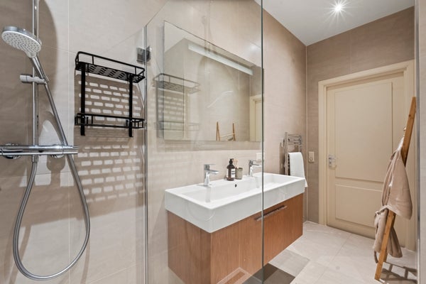 - De tussenverdieping heeft een woonoppervlakte van 94 m² en beschikt over 3 kamers, waarvan 2 slaapkamers;