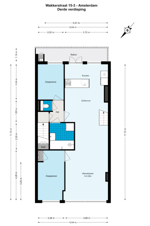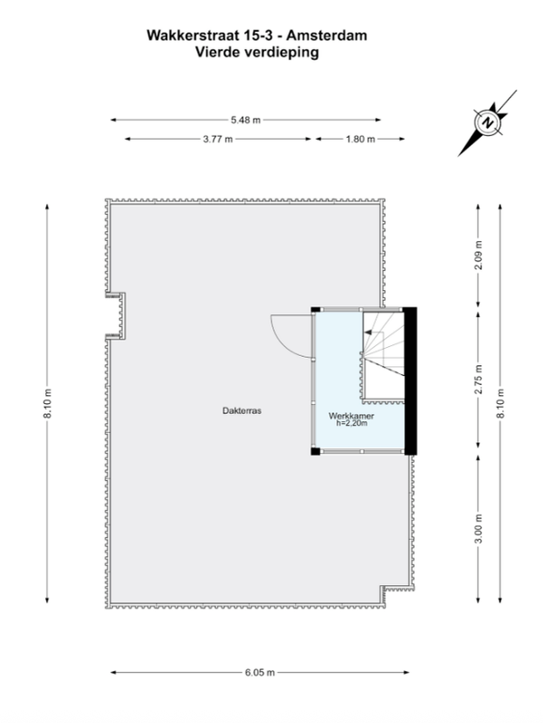 - De bovenwoning heeft een woonoppervlakte van 77 m² en beschikt over 3 kamers, waarvan 2 slaapkamers;