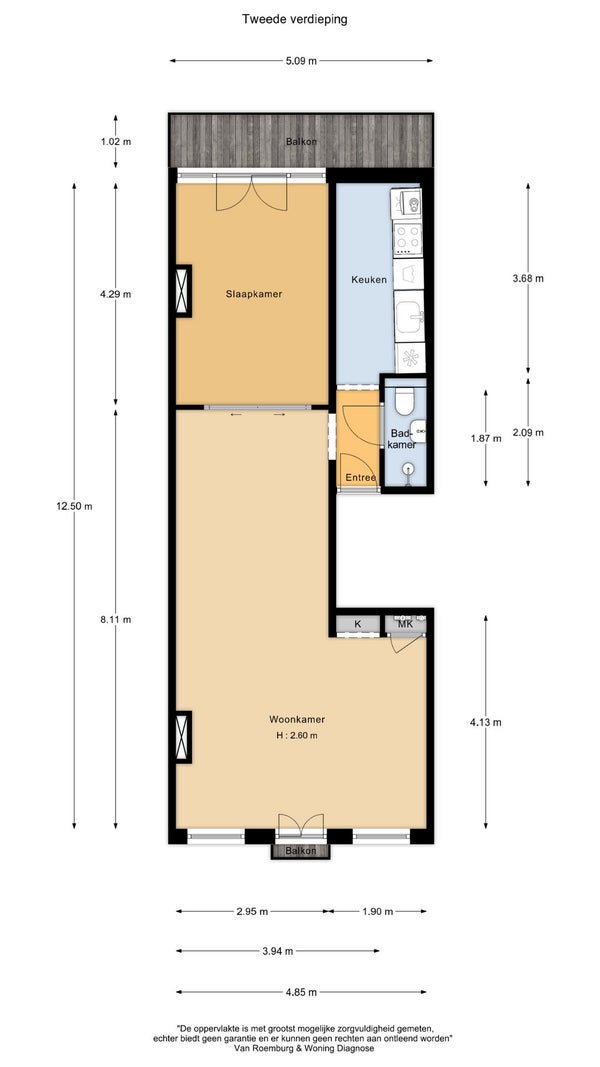- De galerijflat heeft een woonoppervlakte van 56 m² en beschikt over 2 kamers, waarvan 1 slaapkamer;