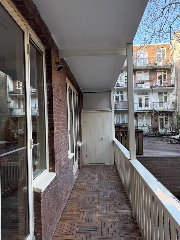 Dit lichte bovenhuis, gelegen aan een gezellige winkelstraat tussen de Hoofddorpplein buurt en Oud-zuid, heeft een slimme indeling. Het bevindt zich op de eerste verdieping van een goed onderhouden pand op eigen grond. Bij binnenkomst kom je in de hal, die leidt naar een kleine voorkamer en de badkamer met ligbad, toilet en wastafel. Aan de rustige achterzijde ligt een ruime slaapkamer, terwijl de lichte woonkamer met Frans balkon en moderne keuken aan de straatzijde is. Het appartement is omgeven door groen, met het Vondelpark en Rembrandtplein dichtbij. De buurt heeft diverse gezellige eetgelegenheden en lokale winkels. Het is goed bereikbaar via auto en openbaar vervoer, nabij de A-10, en ligt op fietsafstand van Station Zuid. De servicekosten bedragen € 59 per maand.