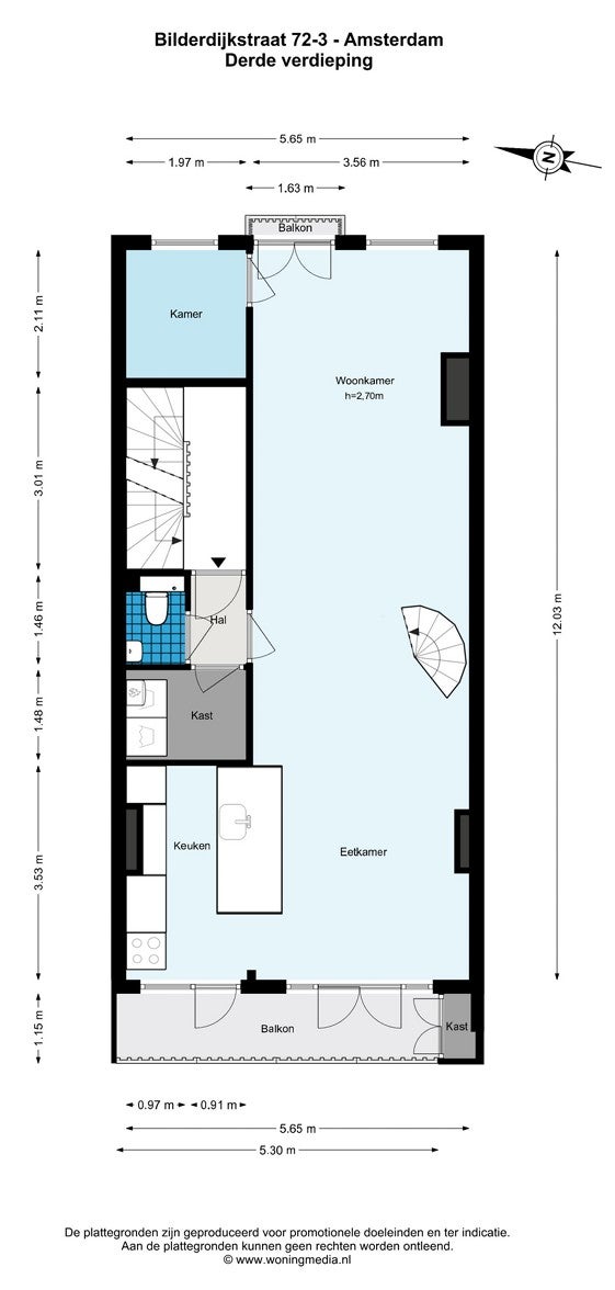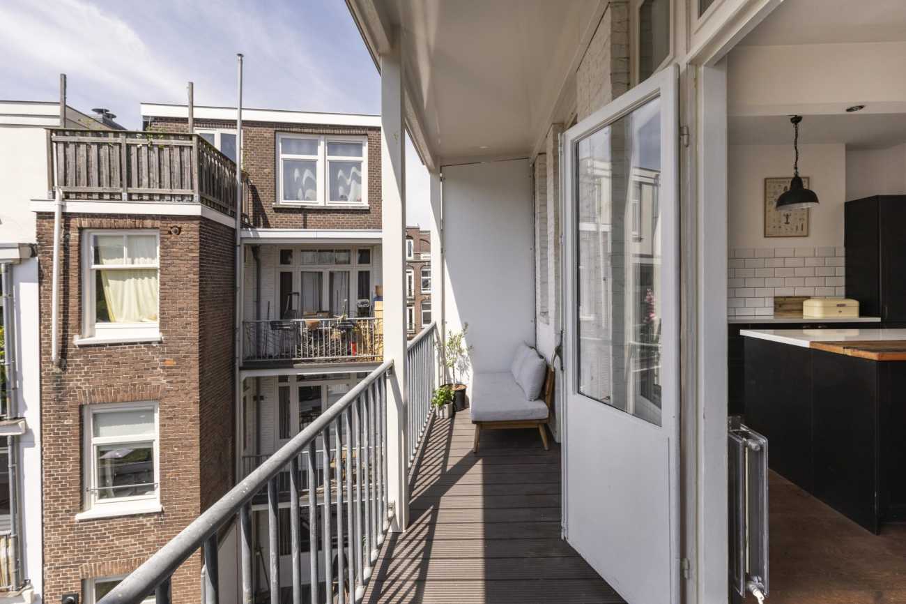 Deze maisonnette in Amsterdam Oud-West biedt 97 m² aan woonruimte in een goed onderhouden gebouw aan de Bilderdijkstraat. Op de derde en vierde verdieping vindt u een lichte woonkamer met een Frans balkon en een open haard, een open keuken met spoeleiland, en drie slaapkamers. De moderne badkamer is uitgerust met een inloopdouche. Het zonnige dakterras van 25 m² nodigt uit tot loungen en barbecuen. In de buurt vindt u winkels, supermarkten en het populaire Vondelpark. De woning heeft energielabel C en de erfpacht is tot 2026 vastgesteld op €107,- per jaar. Servicekosten bedragen €228,59 per maand. Het appartement is goed bereikbaar met het openbaar vervoer en ligt op slechts twee minuten fietsen van het Amsterdamse centrum.