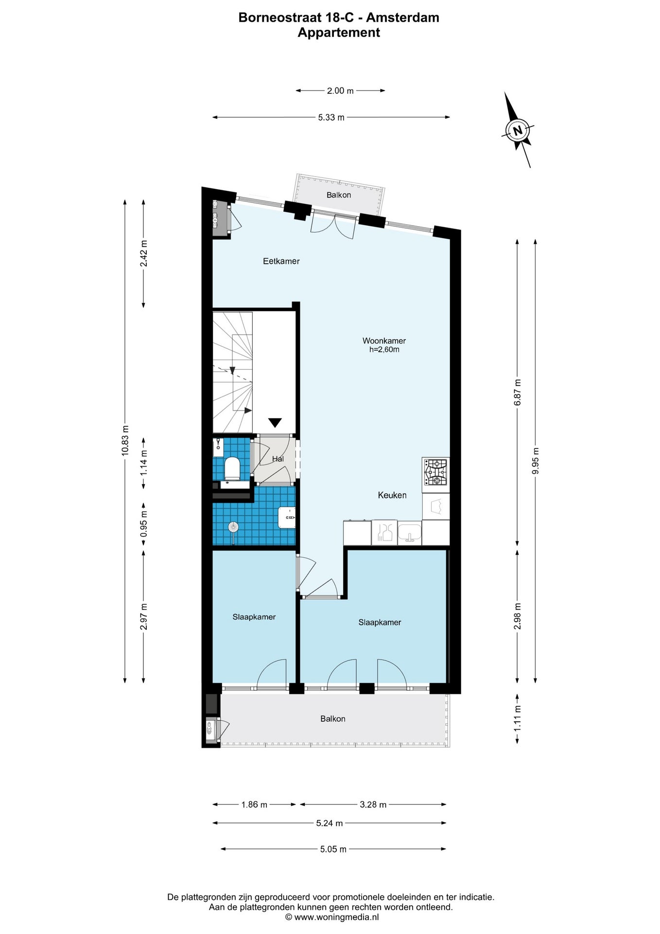 Op de Borneostraat komt dit 3-kamer appartement van ca. 50 m² vrij, gelegen op EIGEN GROND. Het appartement biedt een vrij uitzicht aan de voorzijde en beschikt over twee slaapkamers, een balkon aan de achterzijde van ca. 6 m² en een Frans balkon aan de voorzijde. De open keuken is compleet uitgerust, met apparatuur zoals een 4-pits gasfornuis en een AEG-oven. De badkamer heeft een inloopdouche en wastafel. Dit appartement heeft een energielabel C en is gelegen op de tweede verdieping, met een gemeenschappelijk trappenhuis. De professionele VvE beheert het gebouw, met servicekosten van ca. € 165,- per maand. Voorzieningen zoals tram 7 en diverse horecazaken zijn in de nabije omgeving. Overdracht is mogelijk vanaf 1 mei 2026.