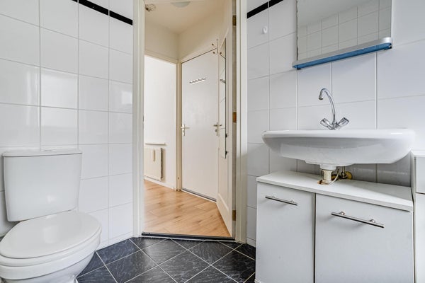 De badkamer is voorzien van een ligbad, wastafel en wc. In de separate stookruimte bevindt zich de CV-installatie en een wasmachine(aansluiting).