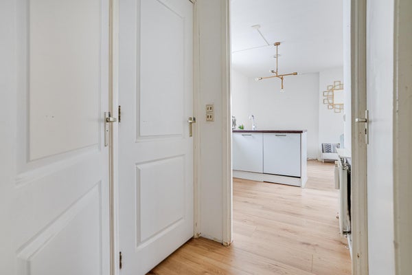 Via de gezamenlijke entree bereikt u het appartement op de eerste verdieping. De hal geeft toegang tot alle vertrekken.