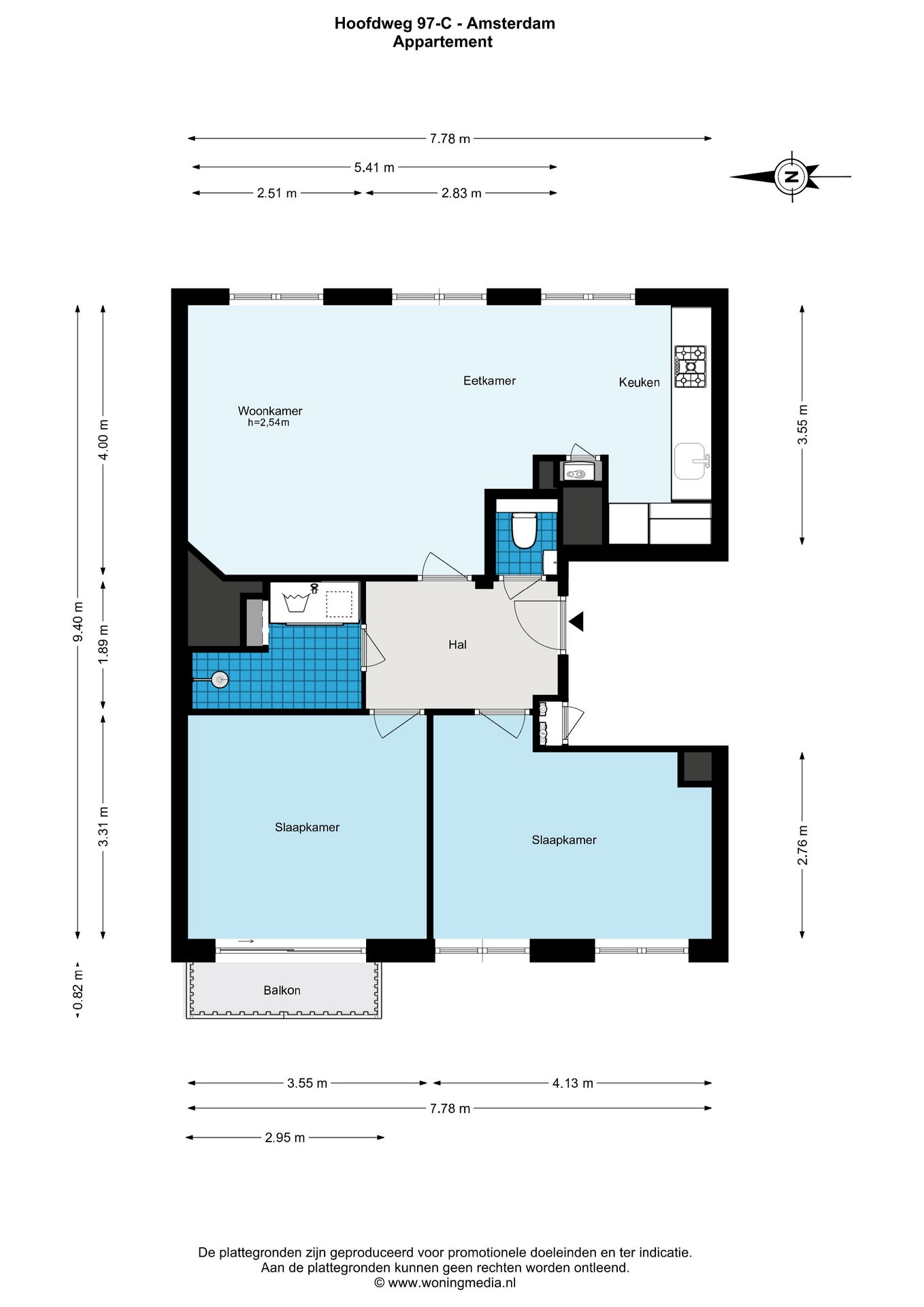 - De galerijflat heeft een woonoppervlakte van 65 m² en beschikt over 3 kamers, waarvan 2 slaapkamers;
