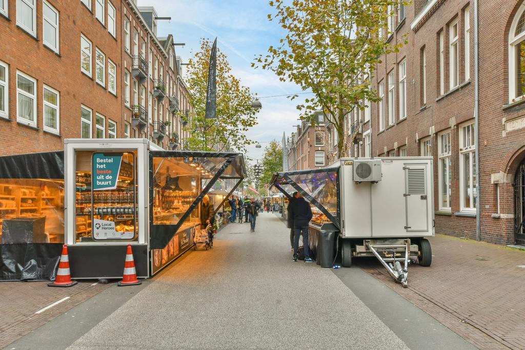 Dit zeer lichte en ruime 3-kamerappartement van 65 m² is gelegen op de bovenste etage van een gebouw uit 1924 in de bruisende wijk De Baarsjes, met een zonnig west-facing balkon van 2,5 m². De erfpacht is eeuwigdurend afgekocht, dus daar hoef je je geen zorgen meer over te maken. De woning biedt uitzicht op de Marowijnestraat via drie ramen in de woonkamer, die komt met een slimme indeling voor zowel een zithoek als een eetgedeelte. De open keuken is uitgerust met ingebouwde apparaten en in de kelder bevindt zich de cv-ketel. Er zijn twee ruime slaapkamers aan de achterkant, waarvan één naar het balkon leidt. De badkamer is voorzien van een inloopdouche en wastafel, terwijl het toilet apart is. De locatie is perfect met voorzieningen op loopafstand. Een actieve VvE met maandelijkse servicekosten van €329, met een energielabel C, maakt deze woning nog aantrekkelijker.