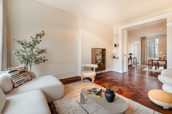 Dit recent gerenoveerde dubbel benedenhuis ligt aan de levendige Stadhouderskade, op de grens van De Pijp en het Museumkwartier. De woning, met een woonoppervlakte van 126 m², beschikt over hoge plafonds, authentieke glas-in-looddetails en en-suite deuren die de woonkamer en eetkamer van elkaar scheiden. Je betreedt de woning via een eigen entree en komt in een ruime hal. De lichte woonkamer met uitzicht op de straat en de royale eetkamer zorgen voor een aangename sfeer. De moderne keuken biedt toegang tot een verbreed balkon van ca. 9,7 m². In het souterrain vind je een grote master bedroom die naar een stadstuin van 13,3 m² leidt, aan de andere kant is er een tweede slaapkamer. De moderne badkamer heeft een ligbad, douche en wastafel. De locatie is ideaal, met restaurants en musea op loopafstand. Servicekosten van €221,54 per maand. Energielabel C. Fundering vernieuwd in 2016.