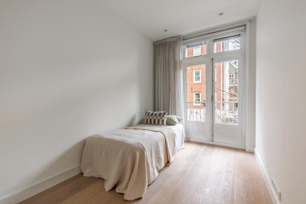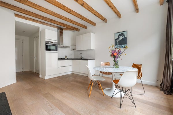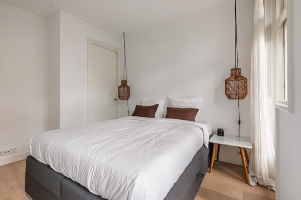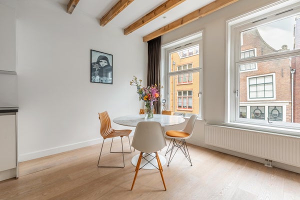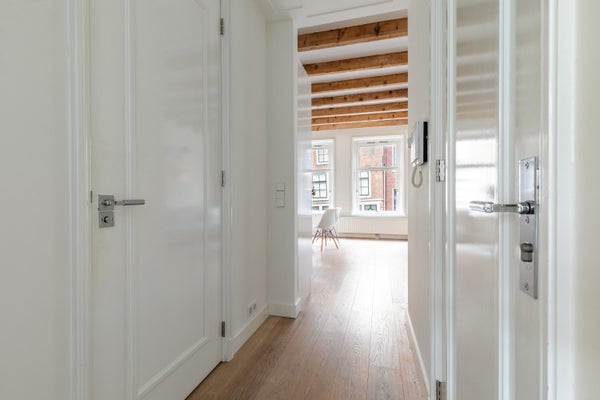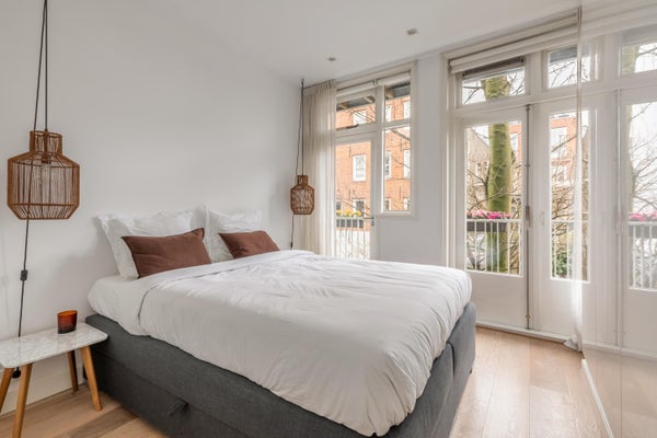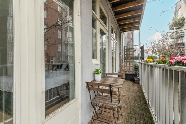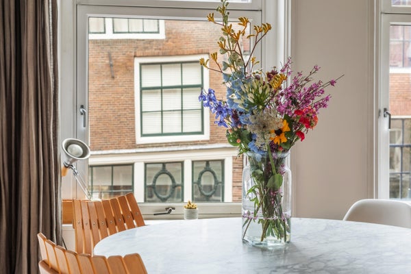 Achter de gevel van dit karakteristieke pand in de Bloemstraat bevindt zich een appartement van circa 54 m², waar licht, ruimte en sfeer samenkomen. Na de renovatie in 2016 geniet u van een ruime woonkamer met open keuken, twee slaapkamers en een balkon van ongeveer 6 m². De entree op de eerste verdieping biedt toegang tot een lichte woonkamer met hoge plafonds en grote ramen die zorgen voor veel natuurlijk licht. De open keuken is uitgerust met moderne inbouwapparatuur. Het appartement heeft een moderne badkamer met een inloopdouche, wastafel, bidet en toilet. Beide slaapkamers geven toegang tot het balkon en zijn ruim genoeg voor diverse doeleinden. Gelegen in de Jordaan, nabij cafés, restaurants en winkels, met goede verbindingen naar het openbaar vervoer.