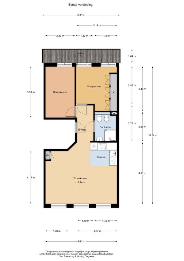 - De galerijflat heeft een woonoppervlakte van 54 m² en beschikt over 3 kamers, waarvan 2 slaapkamers;